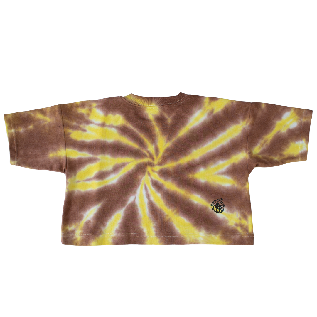 Crop Top Oversized de tela duradera diseñada y confeccionada en nuestro estudio en Guadalajara, Jalisco, con tela suave y duradera de 185 gramos, Con color Tiedye con logos para combinar con todos tus outfits y sea el punto de atención de todos.